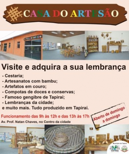 Casa do Artesão – localizada no Centro de Tapiraí, na Av. Profº Nathan Chaves. Reúne os trabalhos de todos os artesãos da cidade, como, por exemplo, couro, produtos a base de gengibre, crochê, tricô, cerveja artesanal, pinturas, móveis, bambu e cestarias. Funciona de domingo a domingo, das 9h às 12h e das 13h às 17h. Entrada gratuita.